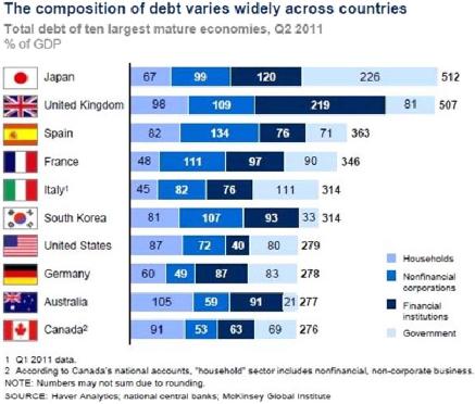 The Greece composite index (which wouldn’t even fit on the previous chart correctly) is down 88% from it’s 2007 highs. These are the kind of deals available to investors who are aware of long term historical cycles and have available cash on hand. As you can see from the chart below, we have a tremendous amount of global debt to shed.