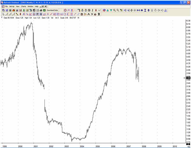 According to the Daily Sentiment Index operated by MBH Commodities the number of traders who are U.S. dollar bulls has dropped to 9%. Inversely, gold is registering 93% bulls with even the more conservative MarketVane survey registering 92% gold bulls. So what does this mean? Jim Rogers, the most vocal dollar bear, who recently moved to Asia and shifted some of his assets into the Yuan, is now admitting that “probably the dollar is going to have a big rally about now because everybody in the world is short the dollar.” He explains: “In my experience in the investment markets, when everybody’s on one side of the boat, you’d better think about going to the other side for a while.” We believe that as the asset fire sale continues, credit will contract and the U.S. dollar will be in high demand. Remember cash is already rising against real estate. Gold, which has been touted by ‘bears’, has recently behaved like a leveraged stock market trade. As Robert Prechter first observed, its rise has been propelled by the liquidity in the system. According to the COT report speculators (hedge funds) are holding a net long position, while commercial hedgers are short. Without hedge fund leverage, what is the true value of gold? We expect a lot less than the current price.